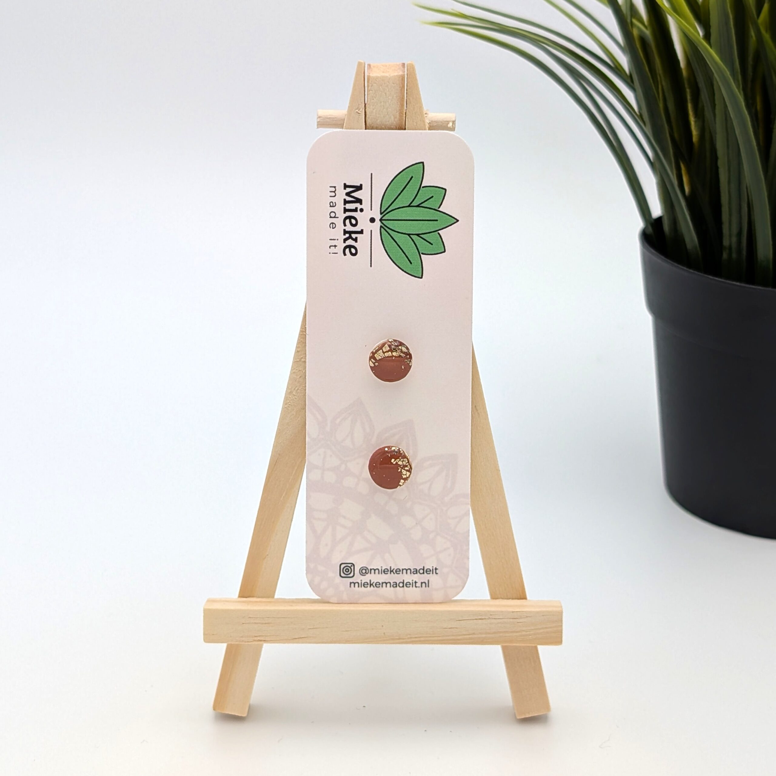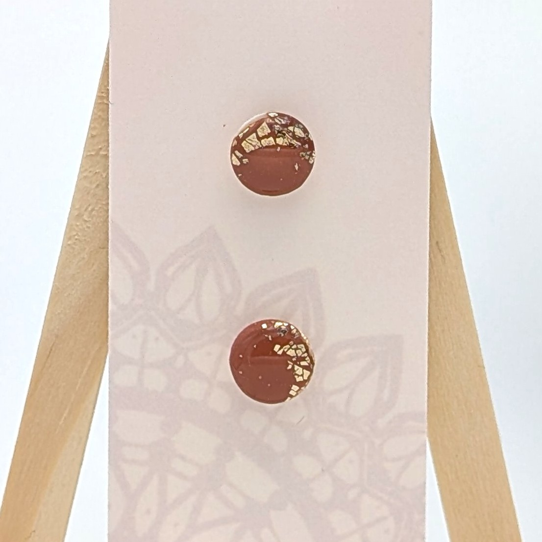 Deze oorstekers zijn gemaakt van polymeerklei. De stekers zitten ingebed in de achterkant van de klei en zijn gemaakt van roestvrij staal dat 18 karaats verguld is. De voorkant van de oorbellen heeft een doorsnede van 0,9 cm.