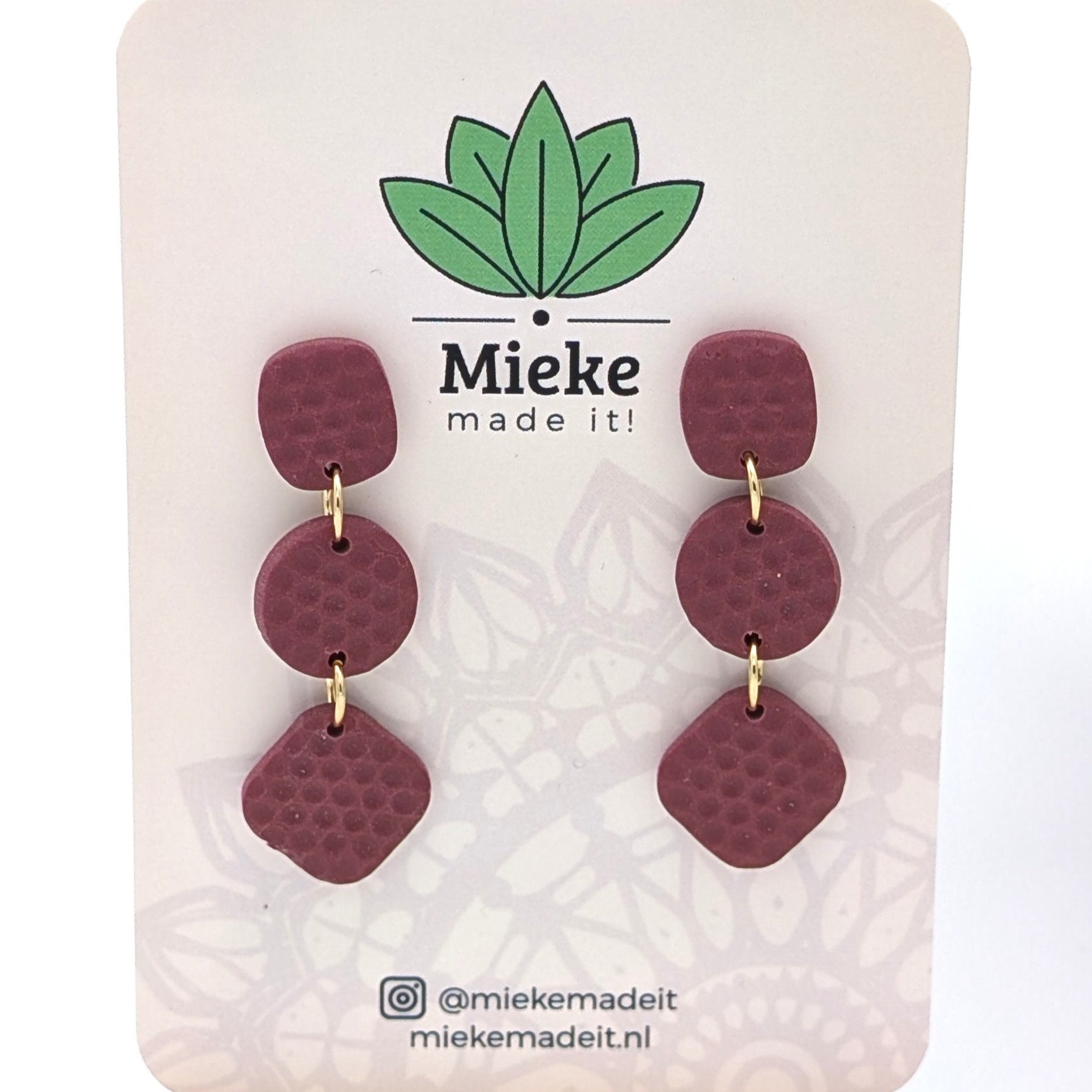 Deze oorbellen zijn gemaakt van lichtgewicht polymeerklei waardoor ze heerlijk licht en comfortabel dragen. De metalen onderdelen zijn gemaakt van roestvrij staal dat 18 karaats goud is verguld. De stekers zitten ingebed in de achterkant van de klei.