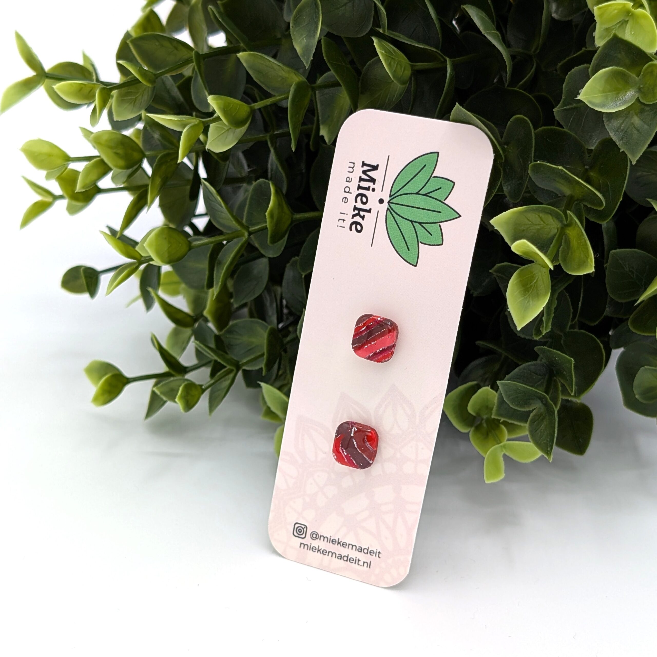 Deze oorstekers zijn gemaakt van polymeerklei. De stekers zitten ingebed in de achterkant van de klei en zijn gemaakt van roestvrij staal dat 18 karaats verguld is. De voorkant van de oorbellen heeft een doorsnede van 0,9 cm.
