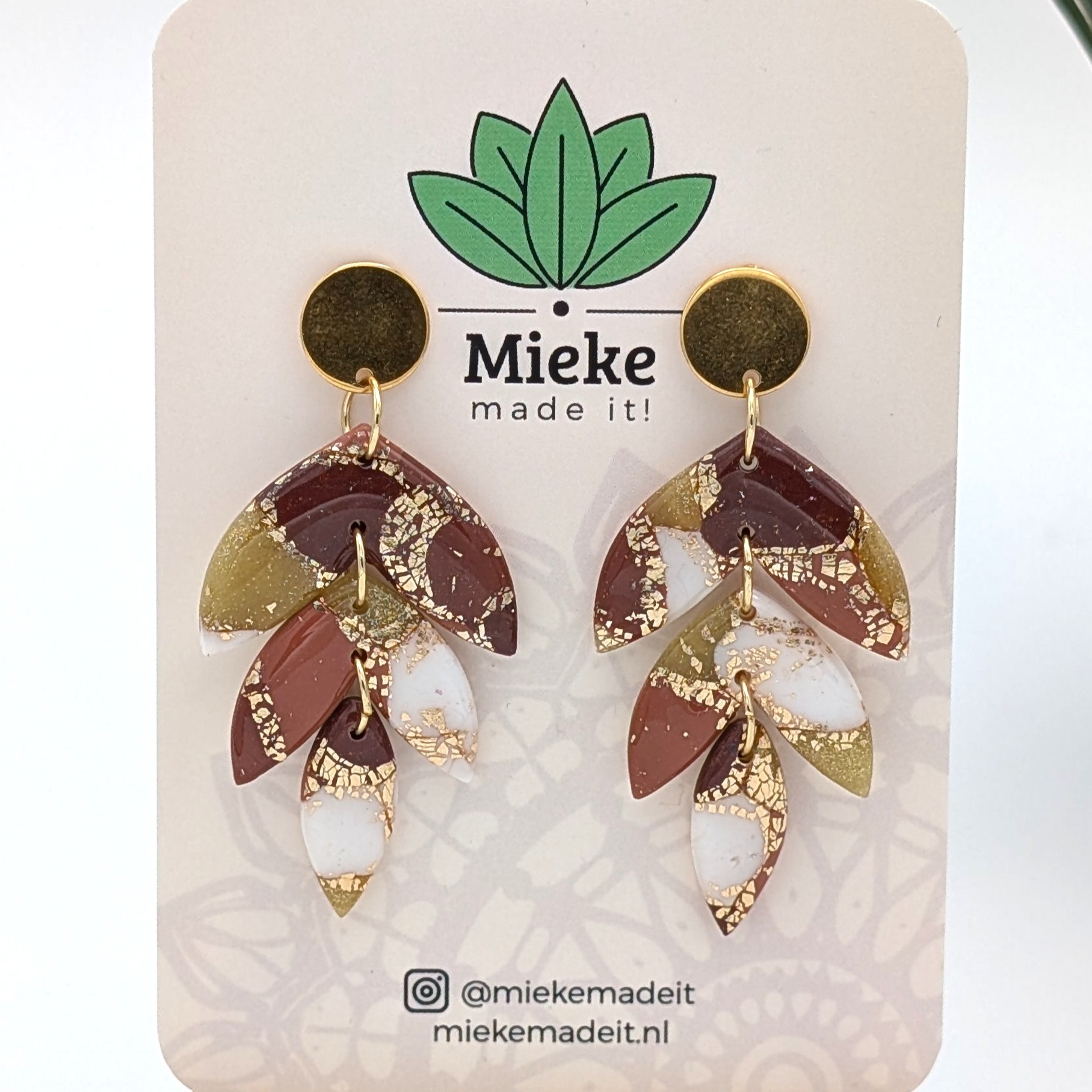 Deze oorbellen zijn gemaakt van lichtgewicht polymeerklei waardoor ze heerlijk licht en comfortabel dragen. De metalen onderdelen zijn gemaakt van roestvrij staal dat is verguld.