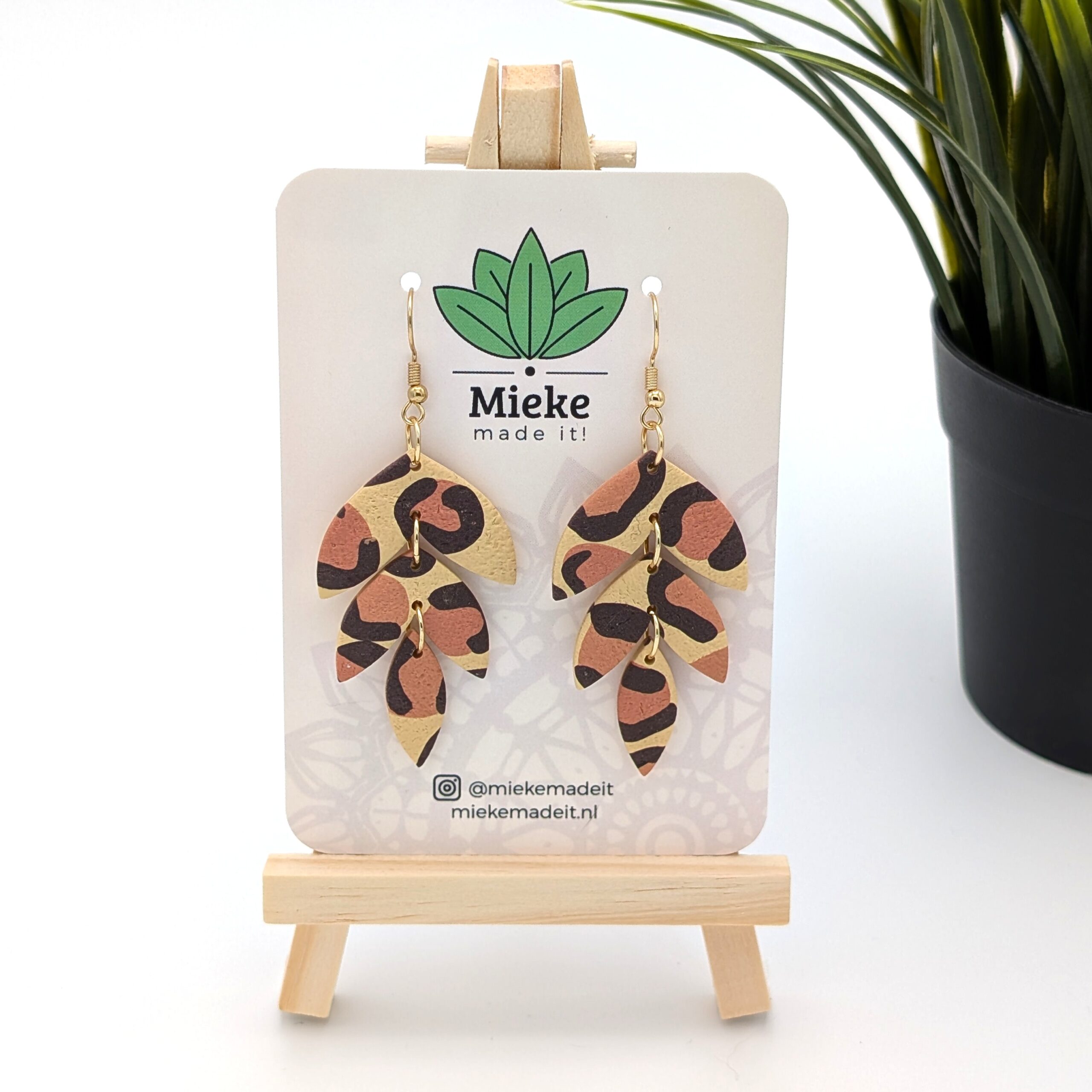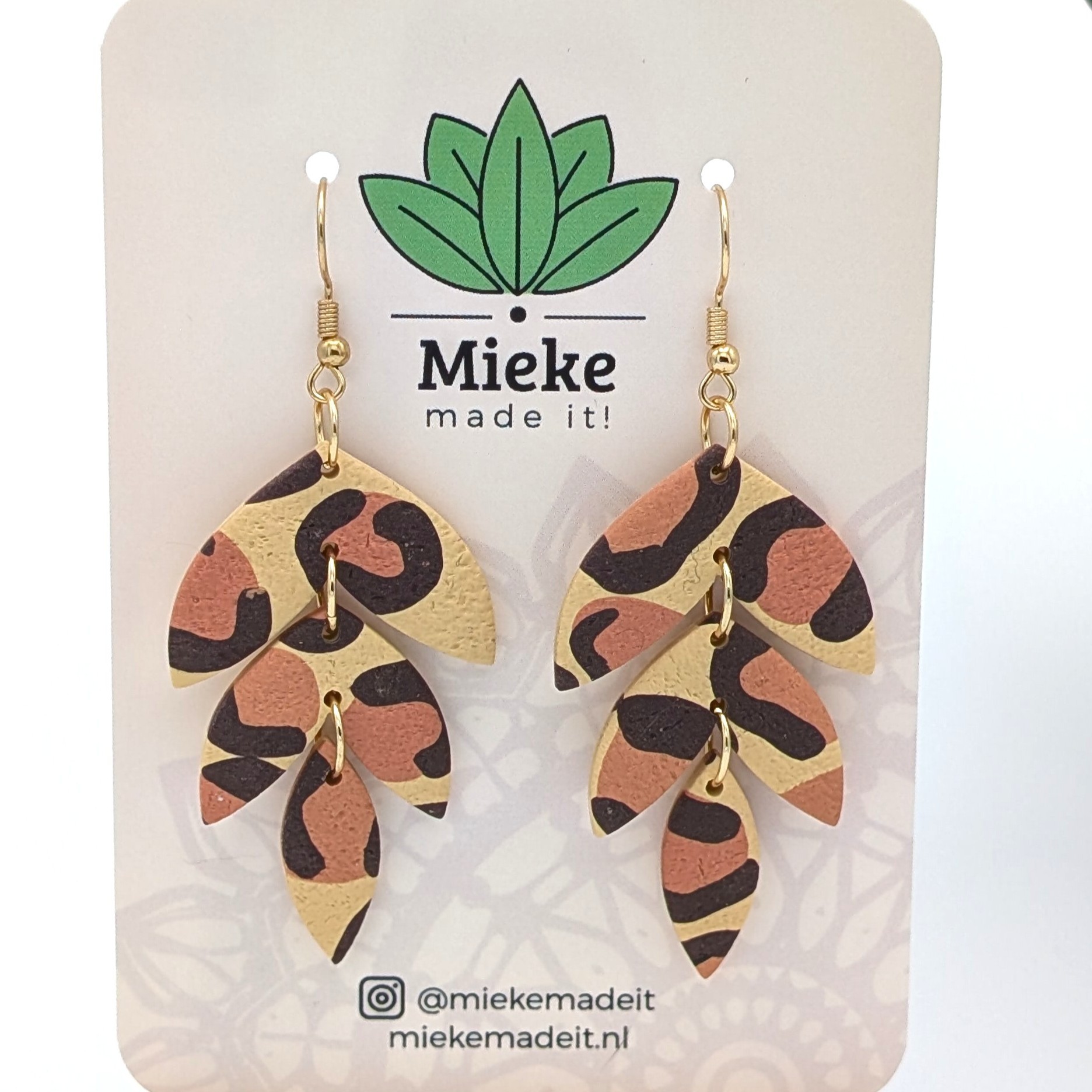Deze oorbellen zijn gemaakt van lichtgewicht polymeerklei waardoor ze heerlijk licht en comfortabel dragen. De metalen onderdelen zijn gemaakt van roestvrij staal dat 18 karaats goud is verguld. Het haakje is 18 karaats verguld chirurgisch staal.