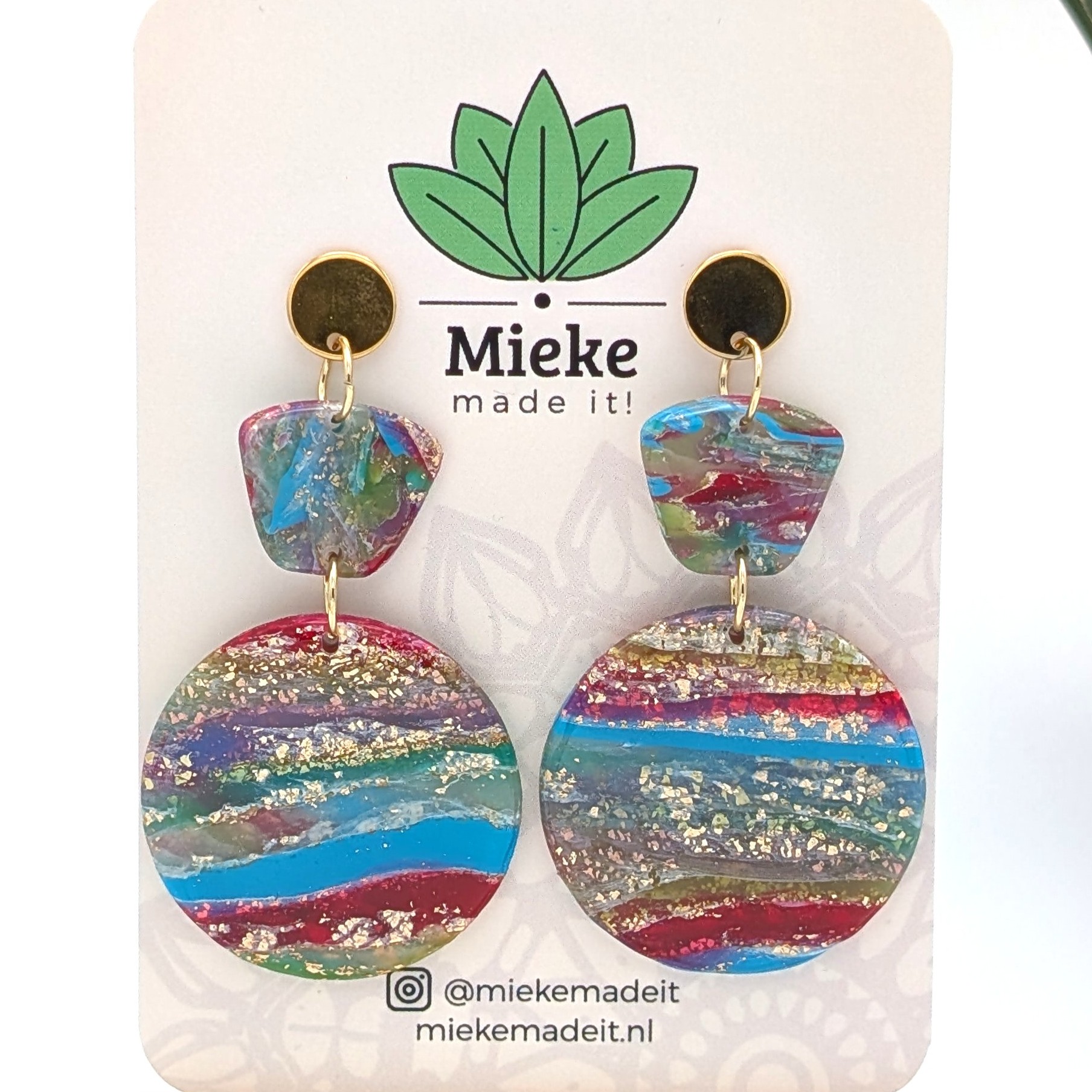 Deze oorbellen zijn gemaakt van lichtgewicht polymeerklei waardoor ze heerlijk licht en comfortabel dragen. De metalen onderdelen zijn gemaakt van roestvrij staal dat is verguld.