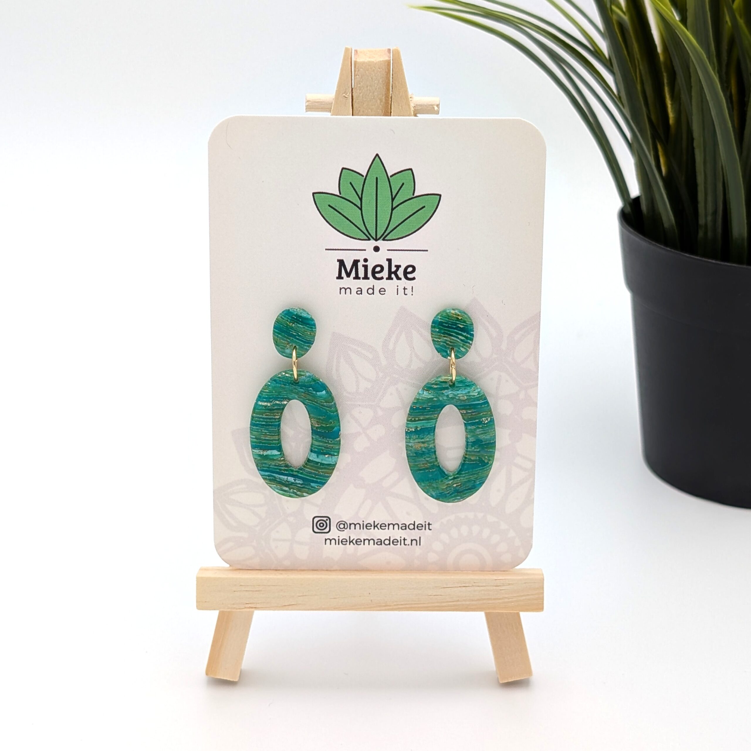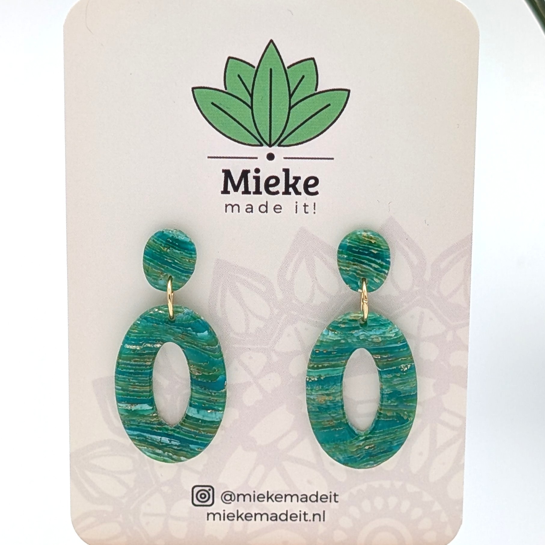 Deze oorbellen zijn gemaakt van lichtgewicht polymeerklei waardoor ze heerlijk licht en comfortabel dragen. De metalen onderdelen zijn gemaakt van roestvrij staal dat 18 karaats goud is verguld. De stekers zitten ingebed in de achterkant van de klei.
