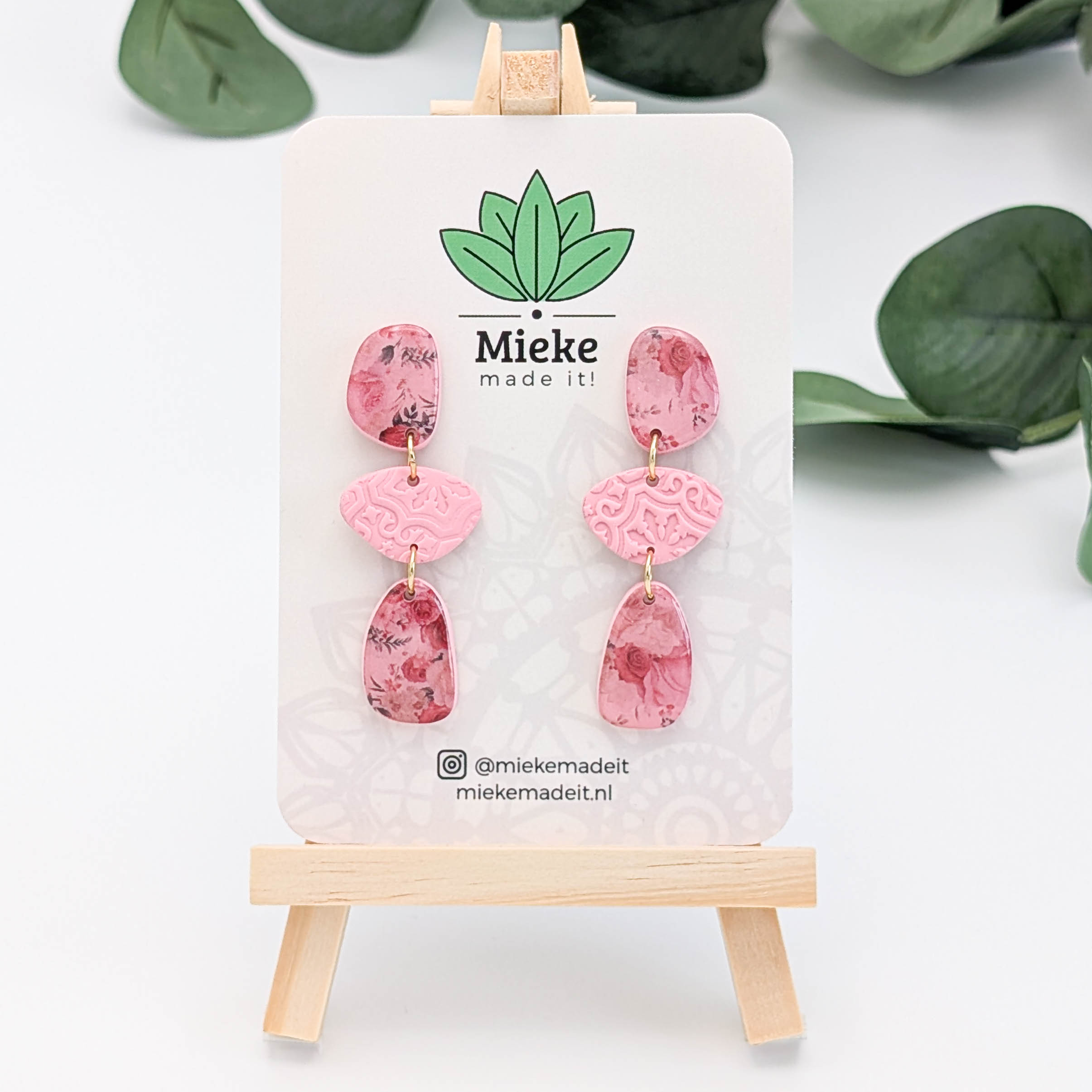 Deze oorbellen zijn gemaakt van lichtgewicht polymeerklei waardoor ze heerlijk licht en comfortabel dragen. De metalen onderdelen zijn gemaakt van roestvrij staal dat 18 karaats goud is verguld. De stekers zitten ingebed in de achterkant van de klei.