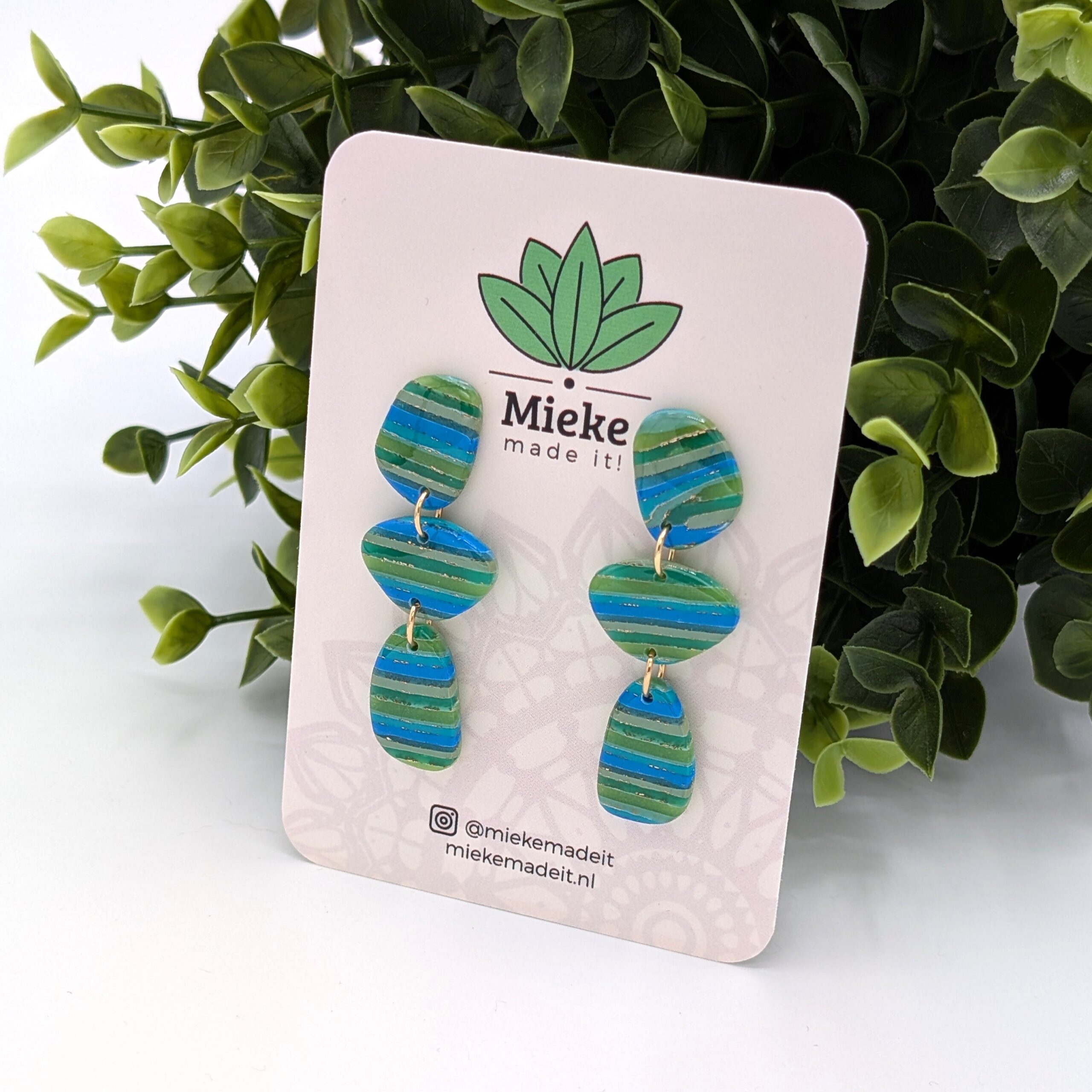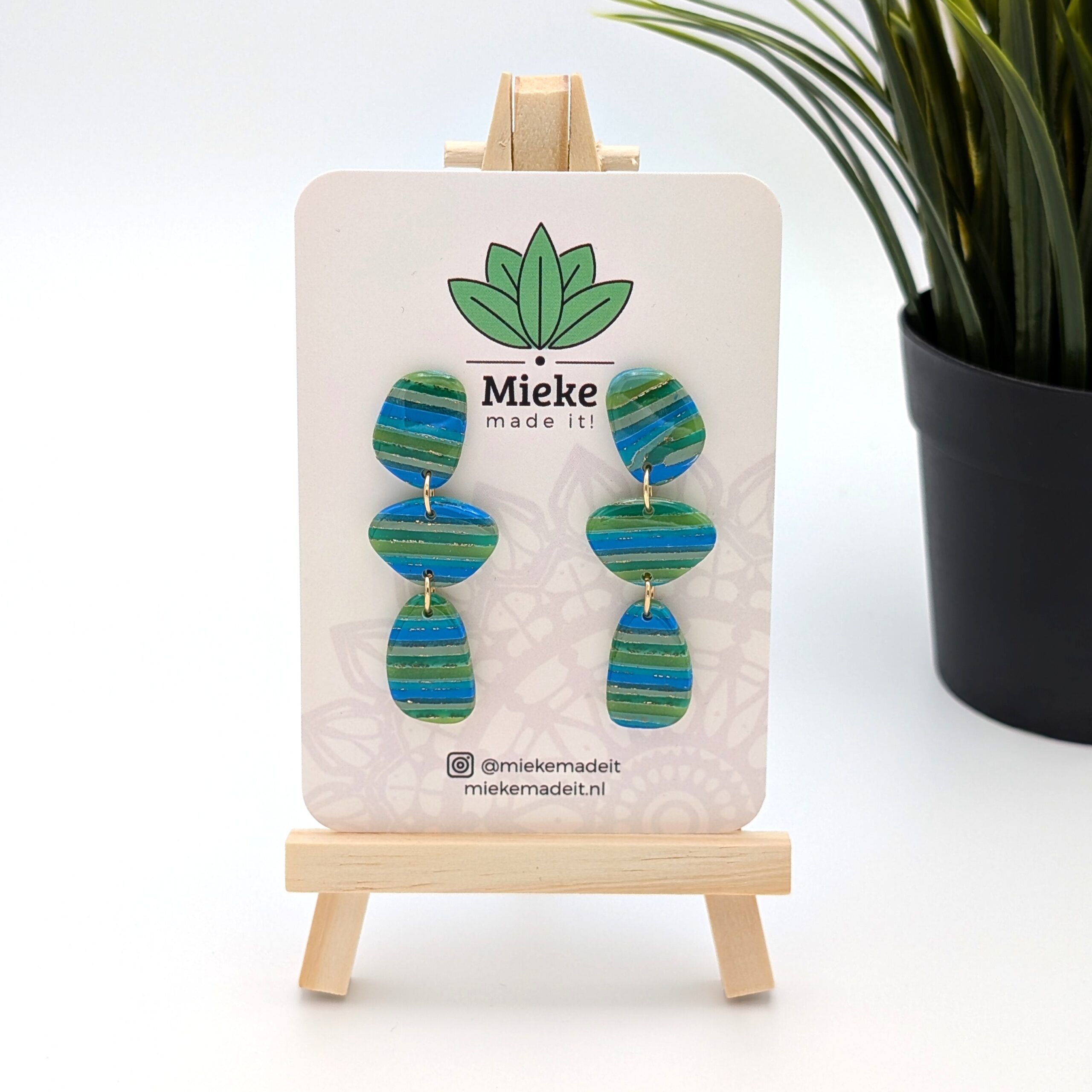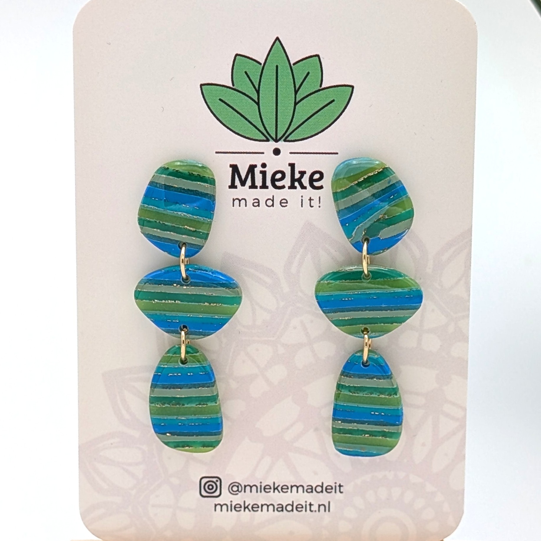 Deze oorbellen zijn gemaakt van lichtgewicht polymeerklei waardoor ze heerlijk licht en comfortabel dragen. De metalen onderdelen zijn gemaakt van roestvrij staal dat 18 karaats goud is verguld. De stekers zitten ingebed in de achterkant van de klei.
