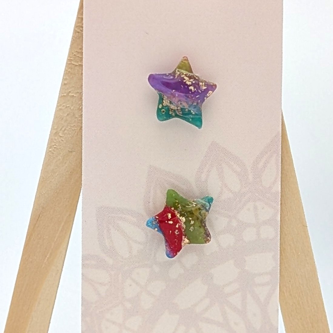 Deze oorstekers zijn gemaakt van polymeerklei. De stekers zitten ingebed in de achterkant van de klei en zijn gemaakt van roestvrij staal dat 18 karaats verguld is. De voorkant van de oorbellen heeft een doorsnede van 1,2 cm.